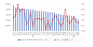 圖 5 2025 年上半年各地區(qū)建筑業(yè)勞動生產(chǎn)率及其增長情況