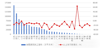 圖 8 2025 年上半年各地區(qū)建筑業(yè)企業(yè)房屋施工面積及其增長情況